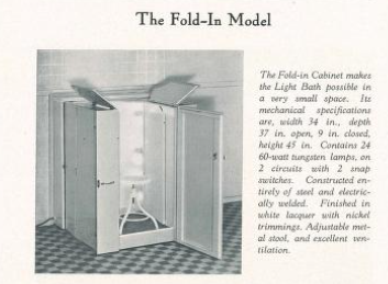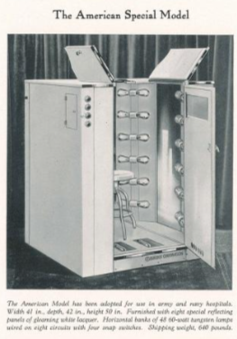 - Chapter V. Electric Light Bath Cabinets, p. 56-62. In Burdick Light Therapy Equipment. (1931) Burdick Corporation, Milton WI, USA. Internet Archive. https://archive.org/details/Burdick/page/n29/mode/2up (Accessed on 11/28/2023).