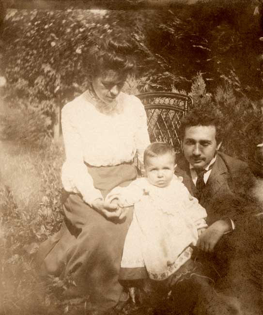“Mileva and Albert Einstein with their son Hans Albert in the garden: postcard.” Author Unknown. 1904-1905. ETH Zurich Archives.